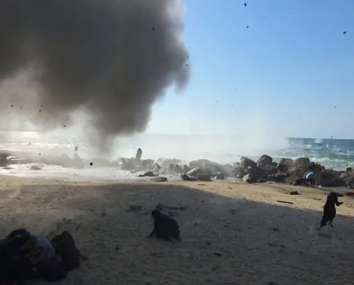 رصدت كاميرا قناة الجزيرة، اليوم الجمعة، لحظة قصف طائرات الاحتلال الإسرائيلي لمربع سكني وخيام تؤوي نازحين في مخيم الشاطئ غربي مدينة غزة شمالي القطاع.