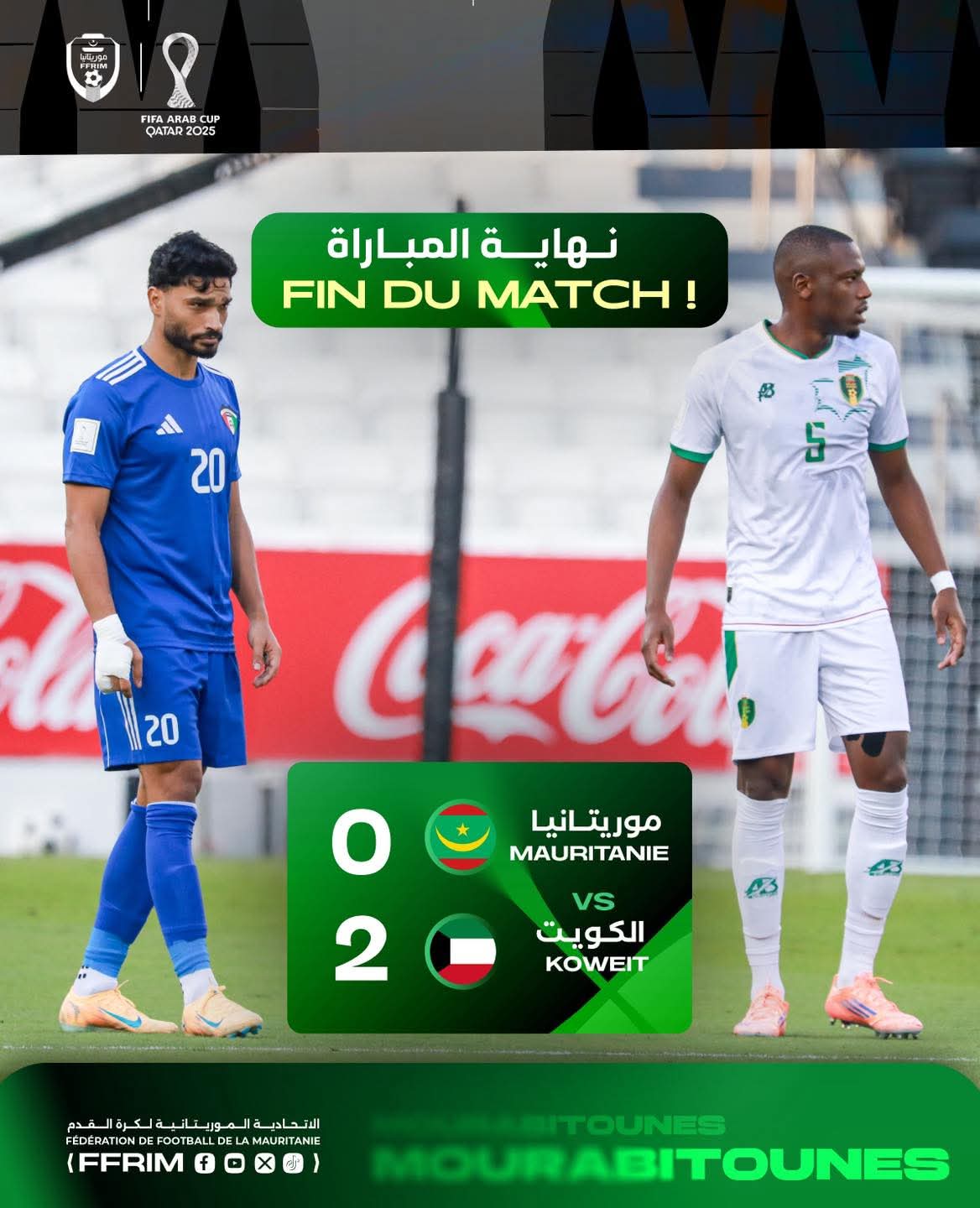 خرج المنتخب الوطني الموريتاني "المرابطون" من التصفيات المؤهلة لكأس العرب 2025، عقب خسارته مساء اليوم أمام نظيره الكويتي بهدفين دون مقابل، في المباراة التي احتضنها ملعب جاسم بن حمد بالعاصمة القطرية الدوحة.
