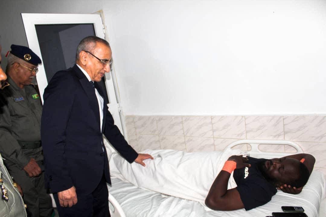 وزار وزير الداخلية محمد أحمد ولد محمد الأمين وقائد الحرس الوطني الفريق إبراهيم فال ولد الشيباني المصابين في المستشفى، للاطلاع على أوضاعهم الصحية ومتابعة سير العلاجات المقدمة لهم.